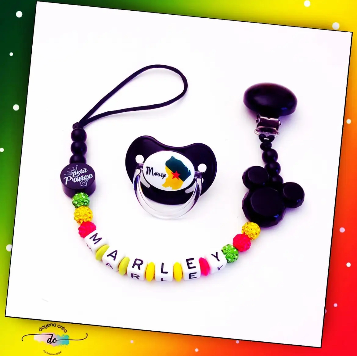 Duo Attache tétine bois + tétine personnalisé carte de de la Guyane possibilité d’y mettre une autre carte Guadeloupe , Martinique ,réunion …. .merci de nous laissez votre choix dans la rubrique note